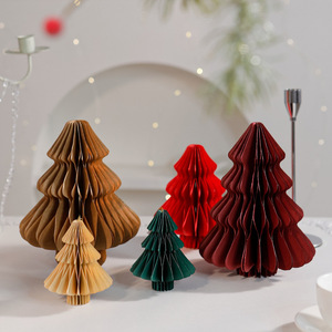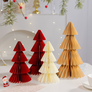 圣诞节装饰品立体蜂窝纸质折叠小圣诞树桌面摆件橱窗氛围场景布置