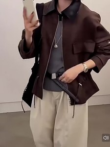 撞色拼接麂皮绒短外套女2025秋季新款宽松百搭小个子夹克上衣
