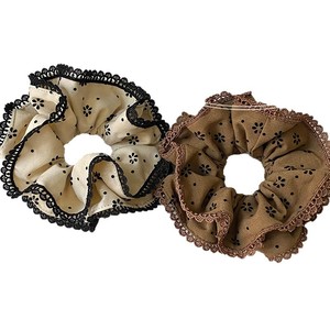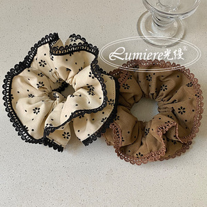 韩式高级复古小碎花纯棉大肠发圈黑色蕾丝气质丸子头花发绳新款女