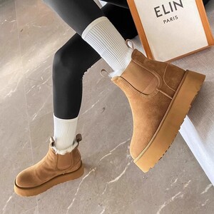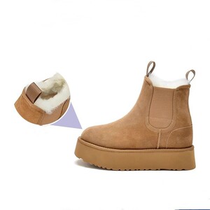 小个子内增高一脚蹬雪地靴女2025冬季新款加绒加厚皮毛一体保暖棉