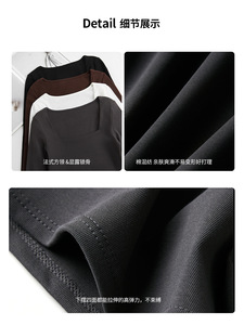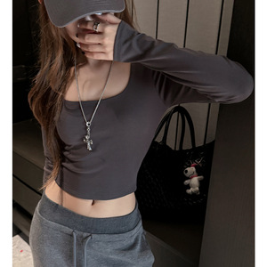纯棉方领秋冬季短款正肩t恤女长袖内搭打底衫修身显瘦可外穿上衣