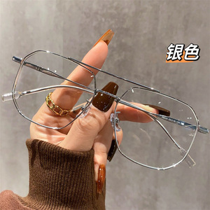 时尚超轻飞行员双梁眼镜男斯文素颜大框显脸小可配度数防蓝光近视