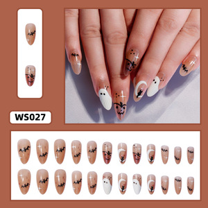 万圣节中长杏仁穿戴甲南瓜幽灵蝙蝠美甲甲片可拆卸指甲贴片24