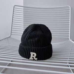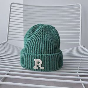 R字母毛线儿童帽子秋冬季帽子ins针织帽潮百搭休闲保暖男童女童帽