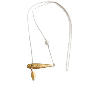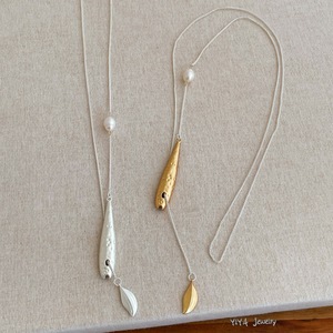 小众多种戴法金属叶片项链长款毛衣链女Y形天然淡水珍珠吊坠颈链