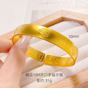 越南沙金五福吉祥如意手镯古法传承錾刻福字实心开口镯子久不掉色