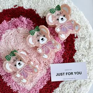 嘉玥饰品透色草莓熊 新款童趣DIY奶油自制醋酸抓夹鲨鱼夹水果发夹
