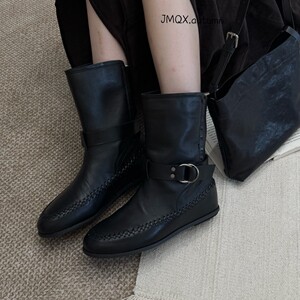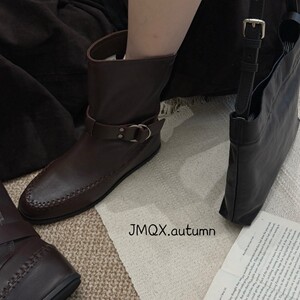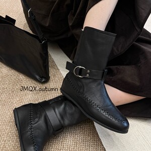 欧洲站英伦风2025新款秋冬短筒马丁靴女款学院风平底皮带扣西部靴