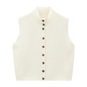广州十三行2025秋韩系复古立领慵懒无袖叠穿氛围感马甲毛衣03081