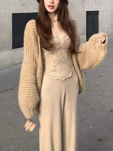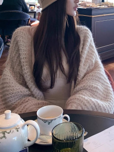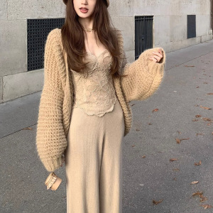 托斯卡纳的秋_温暖羊驼绵羊毛重磅手钩感粗针大开衫廓形外套秋季
