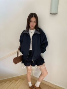 CXI 格纹百搭工装夹克女秋季流行美式格子上衣休闲宽松撞色外套