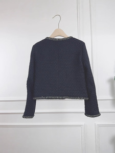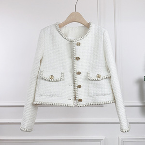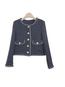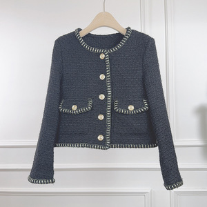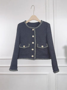 2025秋冬季新款法式小香风粗花呢短外套女圆领金属扣撞色显瘦上衣
