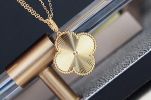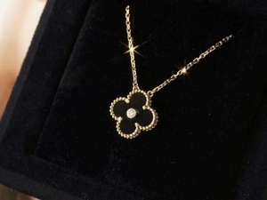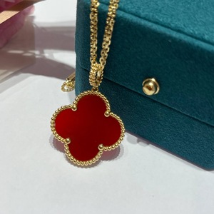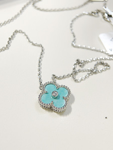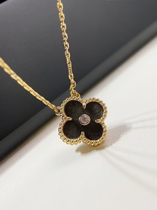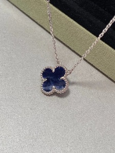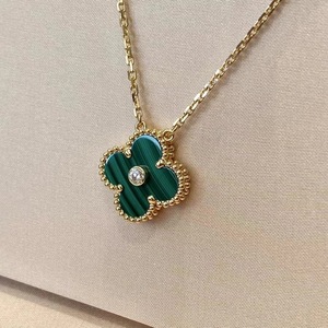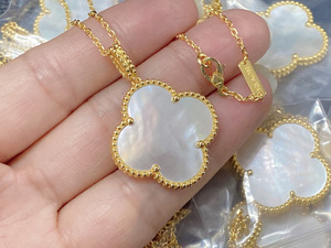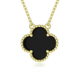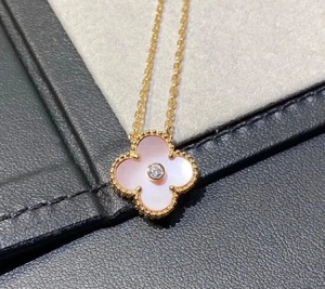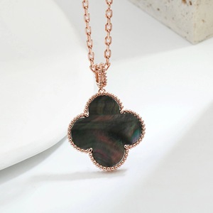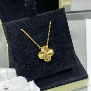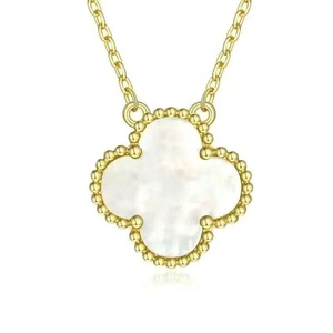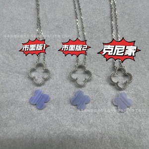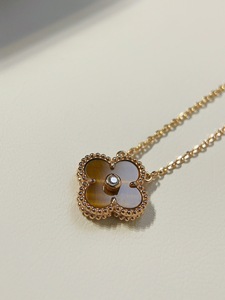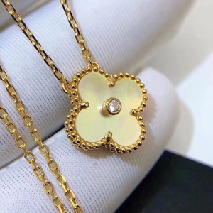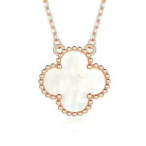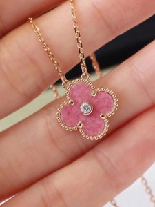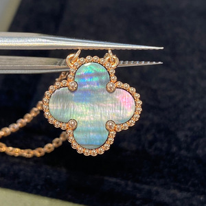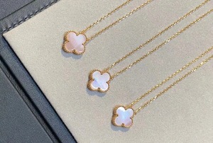 高版本银四叶草项链渡18K金是手链玫瑰红玉髓玛瑙白贝吊坠锁骨链