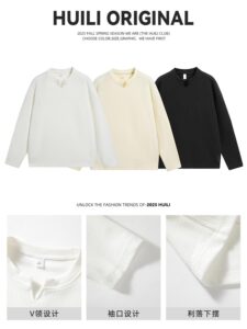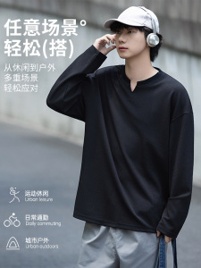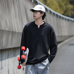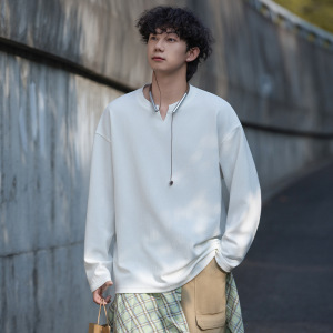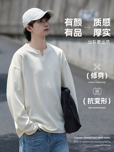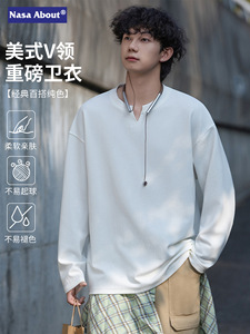 NASA美式V领卫衣男士春秋季2025新款重磅宽松打底衫青少年长袖T恤