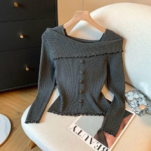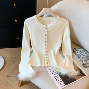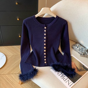 时髦sense*毛毛袖针织打底衫女冬季修身内搭上衣黑色均码深灰色
