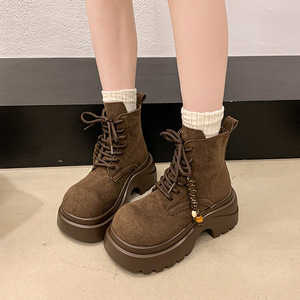 厚底增高显瘦马丁靴女鞋2025年秋冬季新款英伦风复古系带短筒靴子