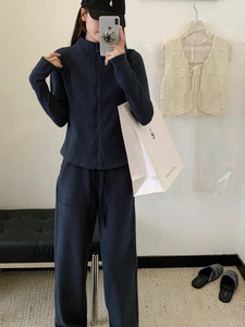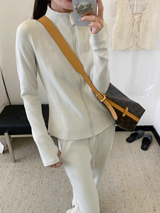 桑坡云朵立领套装软羊绒蛋白2025新款女士外穿微绒修身运动两件套