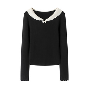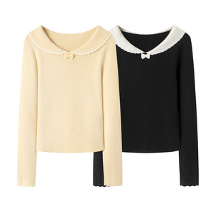 00AA-0067花边娃娃领套头毛衣2025秋季新款甜美小个子打底衫上衣