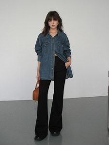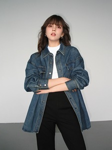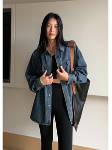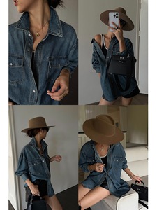 NEVA HU蓝色复古牛仔衬衫女宽松2025新款休闲设计感长袖外套上衣