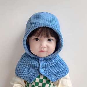 跨境拉法宝宝针织帽子秋冬防寒婴儿包头帽小童外出防风围脖一体帽