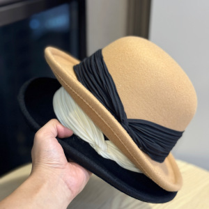 法式显脸小羊毛毡卷边渔夫帽子女春秋冬季时尚英伦复古盆帽礼帽潮