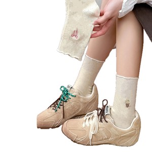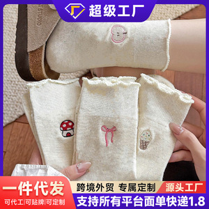 花边袜子女生春秋款中筒袜蝴蝶结ins简约百搭秋季舒适可爱学生袜