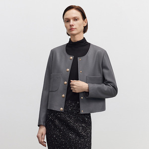2025秋新款山羊皮短款圆领小香风真皮皮衣女外套海宁简约女士皮衣