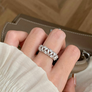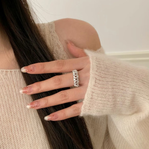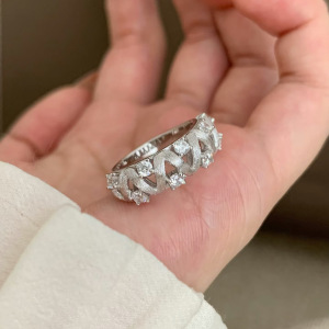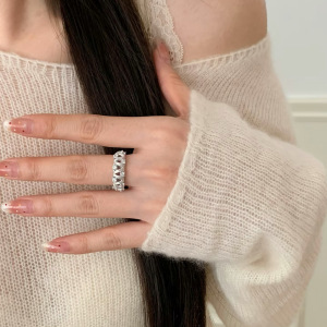 轻奢气质风波浪蕾丝戒指女高级灵动感拉丝微镶工艺绣花球开口戒指