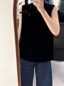 南油批发秋季新款国风系列丝绒马甲搭配小花朵可拆卸面料真丝丝绒