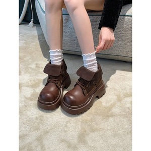 磨砂马丁靴2025年新款字母翻领机车靴大黄靴两穿松糕女鞋