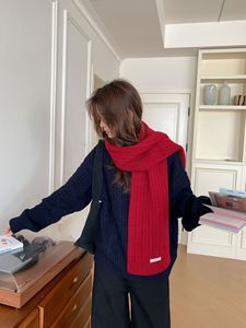 复古新年红色镂空针织围巾女冬季百搭纯色加厚学生保暖情侣款围脖