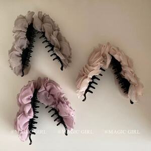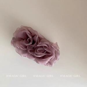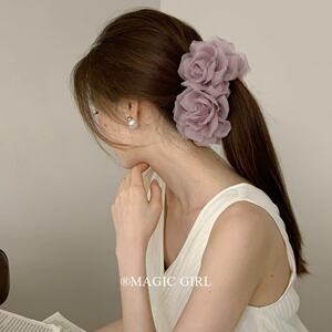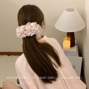 新款超仙温柔山茶花朵香蕉夹女高级感后脑勺马尾盘发抓夹子头饰女
