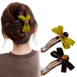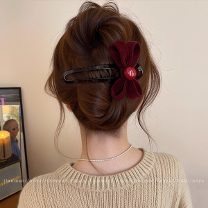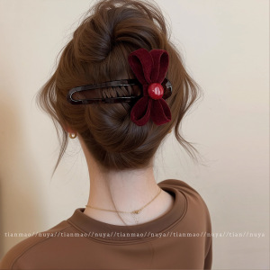 早秋丝绒蝴蝶结鸭嘴夹发夹女后脑勺2025新款一字抓夹高级感鲨鱼夹