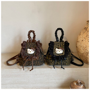 儿童包包新款豹纹甜美可爱花边猫咪女孩双肩包学院风百搭小背包潮