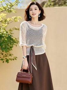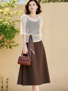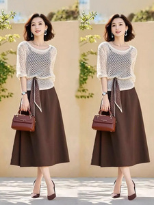 今年流行爆款长袖镂空针织罩衫吊带连衣裙女夏季2025秋装新款套装