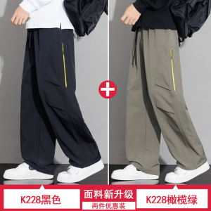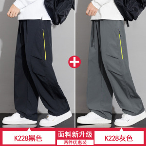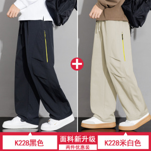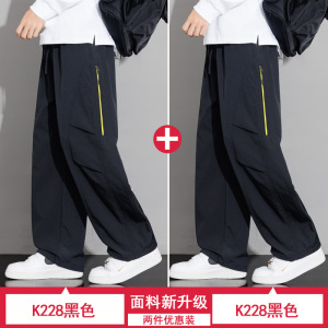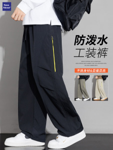 NASA黑色工装裤男士春秋款2025新款宽松直筒秋季户外防泼水休闲裤