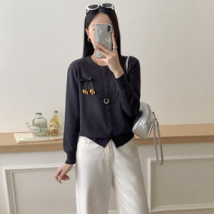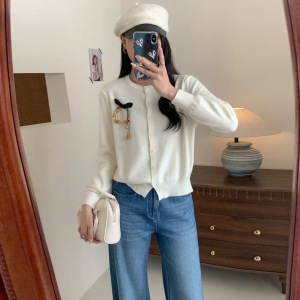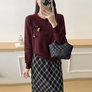 2025早秋新款女装独特别致圆领针织开衫时尚气质百搭的减龄款毛衣