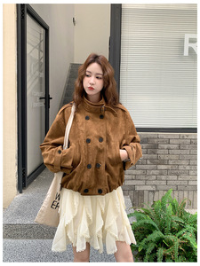 休闲减龄卡其色麂皮绒短外套女春秋2025新款小个子夹克上衣巨好看