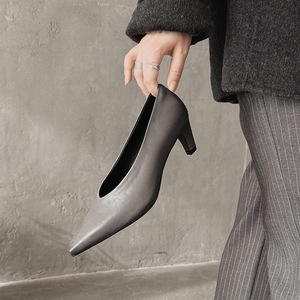 中古裸色!头层牛皮单鞋女细跟秋季新款职业工作鞋上班单鞋女欧货