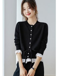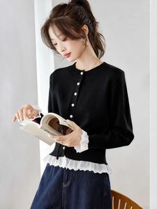 哥家商场同款女装2025秋季设计感拼接针织开衫设计感拼接针织衫