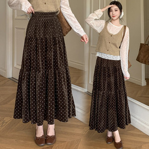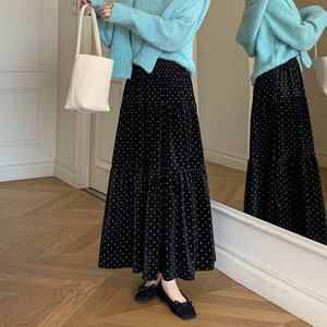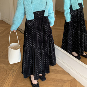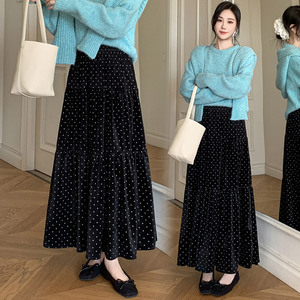 糖糖~2025秋冬法式印花圆点半身裙女松紧腰a字拼接蛋糕长裙