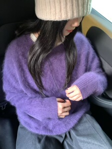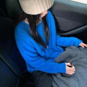 韩系秋款仿貂绒毛茸茸宽松显瘦毛衣女圆领套头针织衫简约基础内搭
