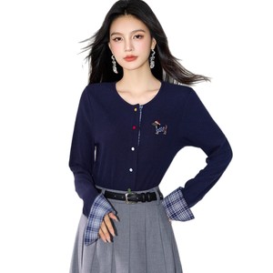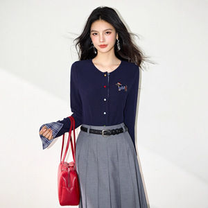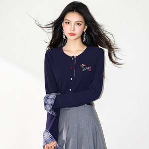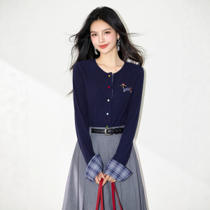 学院风假两件上衣女秋季2025新款韩系气质显瘦开衫拼接长袖针织衫