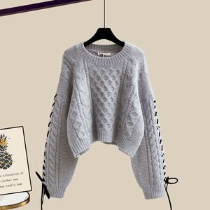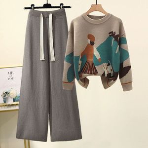 大码女装秋冬季套装女新款洋气针织毛衣女宽松显瘦休闲裤两件套潮