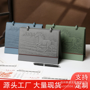 2026马年新款皮质台历创意商务办公桌面摆件定制批发日历可印logo