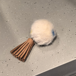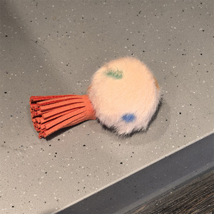 卡其波点毛球流苏鞋挂