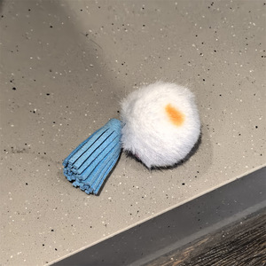 浅蓝波点毛球流苏鞋挂