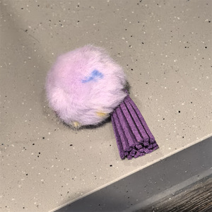 紫色波点毛球流苏鞋挂