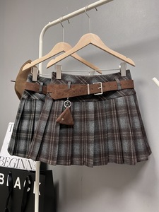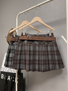 美式复古格子毛呢半身裙女2025秋冬新款高腰显瘦A字学院风百褶裙
