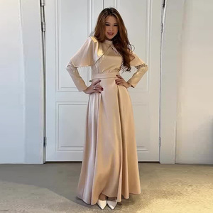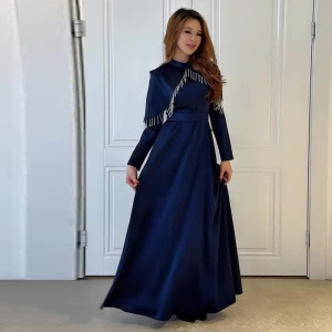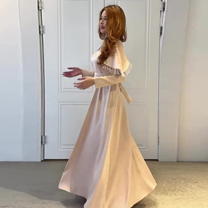 2025年秋气质新款欧美亚马逊跨境外贸女装优雅收腰长袖带钻连衣裙